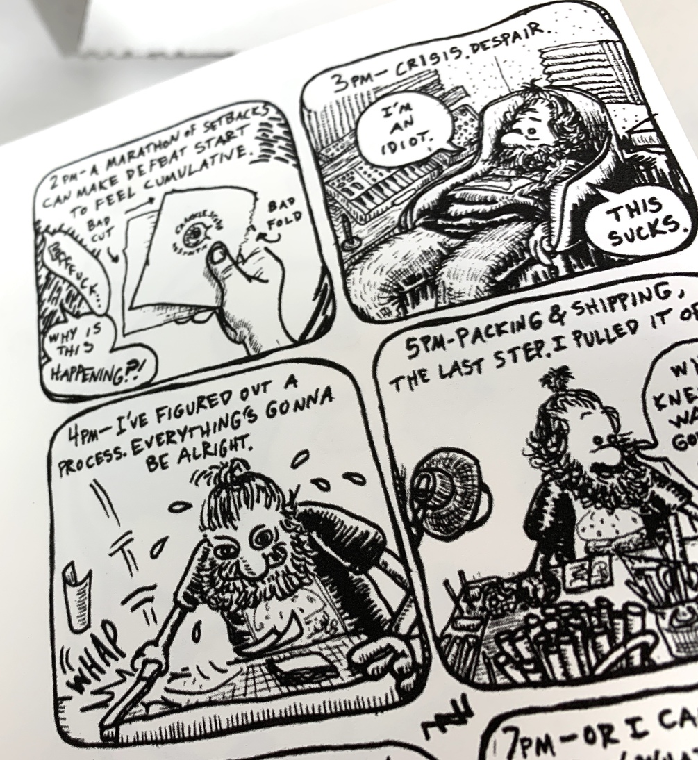 "Cuts of Me" is the second volume of the autobiographical "Human Stuff" comic series. You don't need to read the first one for this book to make sense, but it picks up right where the first book left off. Nacho Nova, a bipolar cartoonist, chronicles his new hometown of Austin, TX, domestic life with his wife, unsatisfying temp jobs, & life during the global pandemic.